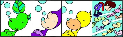Four scene cartoon
